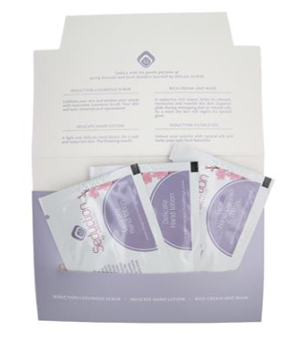 - Seduction Delicate Hand Lotion 3ml: Een lichte en delicate handlotion, voor een zachte en verleidelijke huid. De finishing touch!